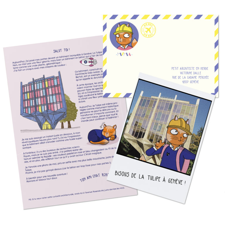 Quand Chat Rchitecte écrit, les bâtiments prennent vie : ils racontent leurs secrets, leurs fonctions, leurs formes et leurs couleurs.